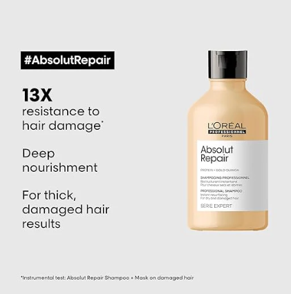 L'OrealL’Oréal Professionnel Absolut Repair Shampoo – 1500 mL Overview Bring life back to damaged, dry or over-processed hair with L’Oréal Professionnel A...